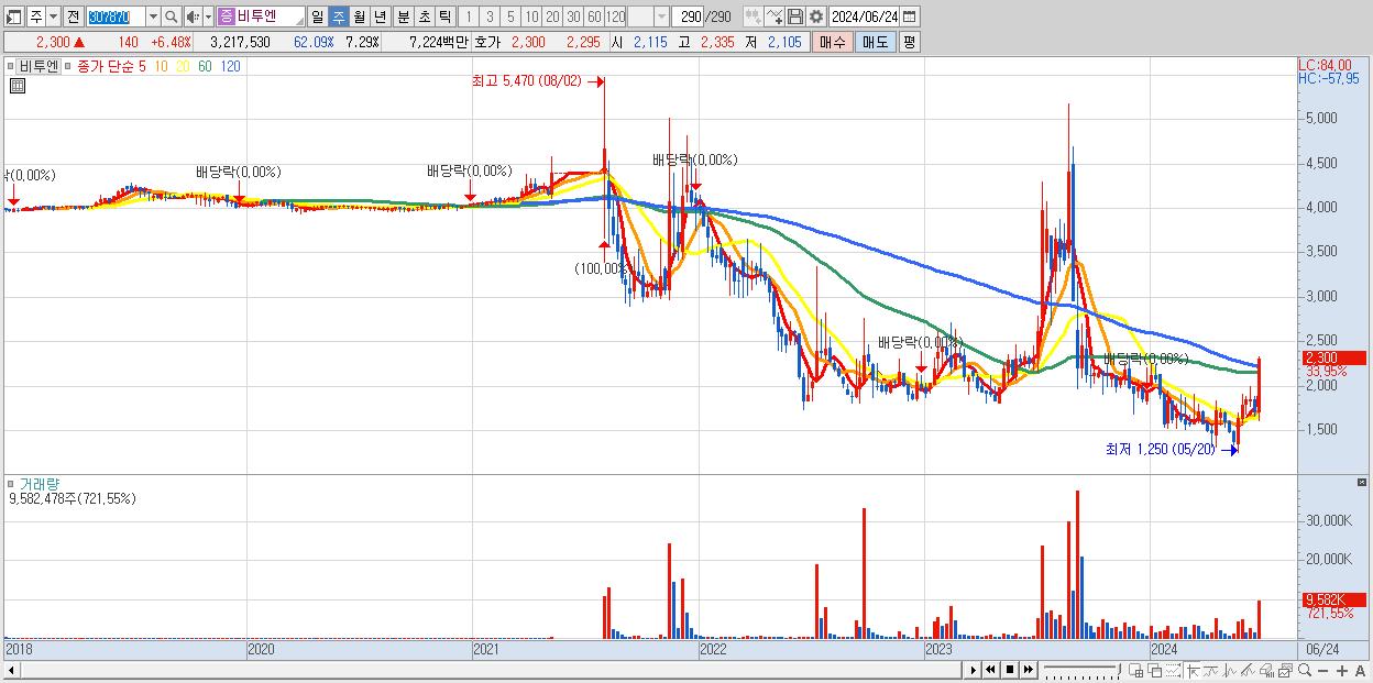 - 비투엔 (2,300원 ▲ 33.95% , 시총: 1,015억, 거래량: 9,582,478, 거래대금:200억)