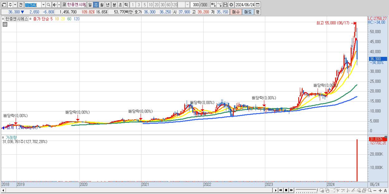 - 한중엔시에스 (36,300원 ▲ 21% , 시총: 3,177억, 거래량: 31,036,761, 거래대금:13,420억)