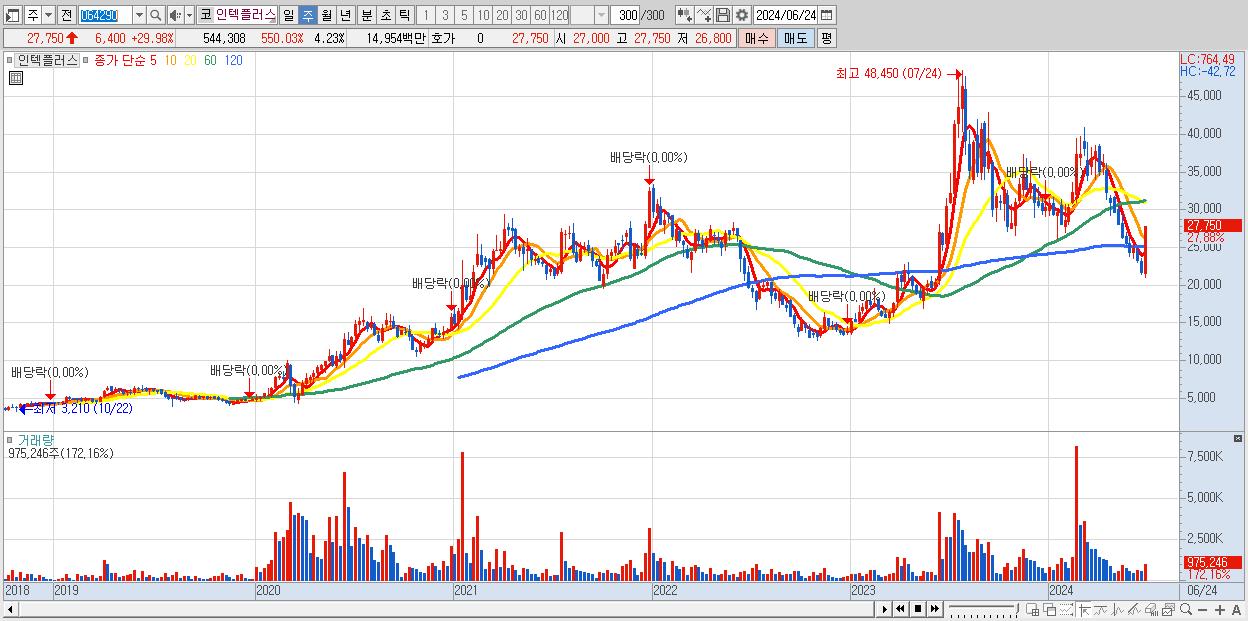 - 인텍플러스 (27,750원 ▲ 27.88% , 시총: 3,570억, 거래량: 975,246, 거래대금:242억)