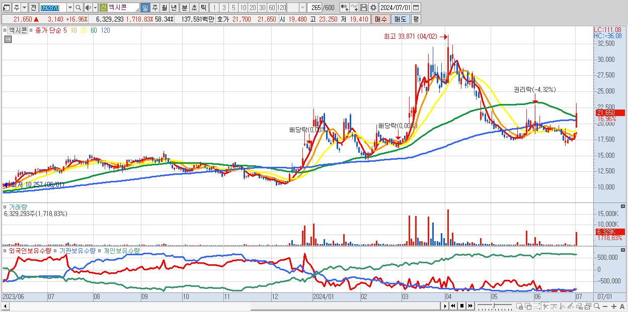 - 엑시콘 (21,650원 ▲ 16.96% , 시총: 2,349억, 거래량: 6,329,293, 거래대금:1,376억)