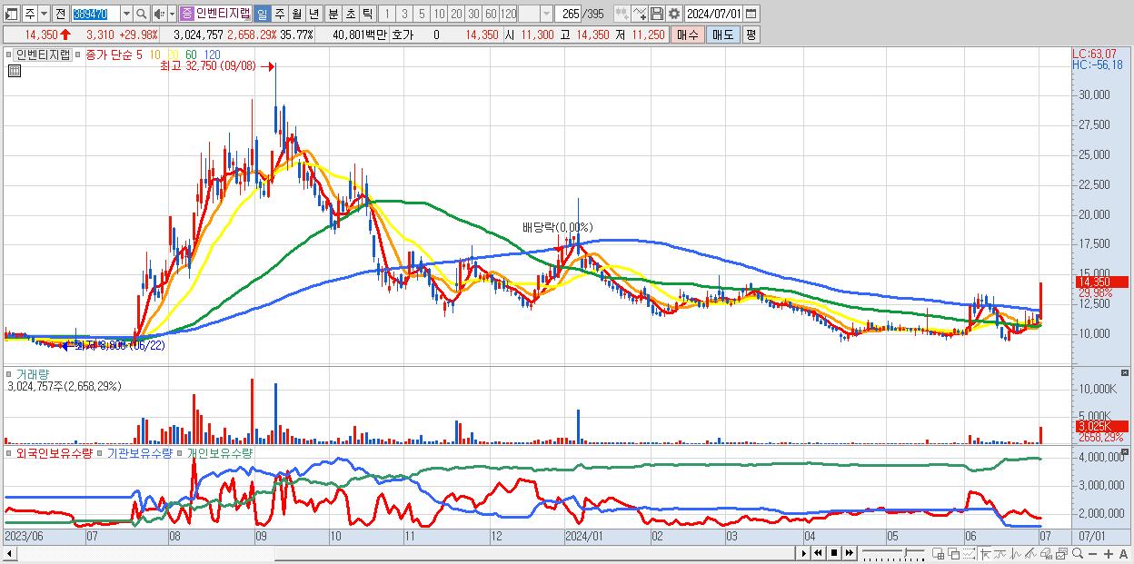 1.인벤티지랩 14,350원 ▲ 29.98% (KOSDAQ, 389470)