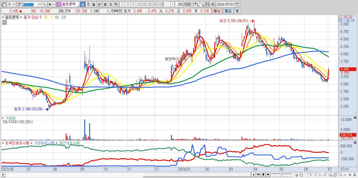 - 옵트론텍 (3,495원 ▲ 9.39% , 시총: 952억, 거래량: 336,574, 거래대금:12억)