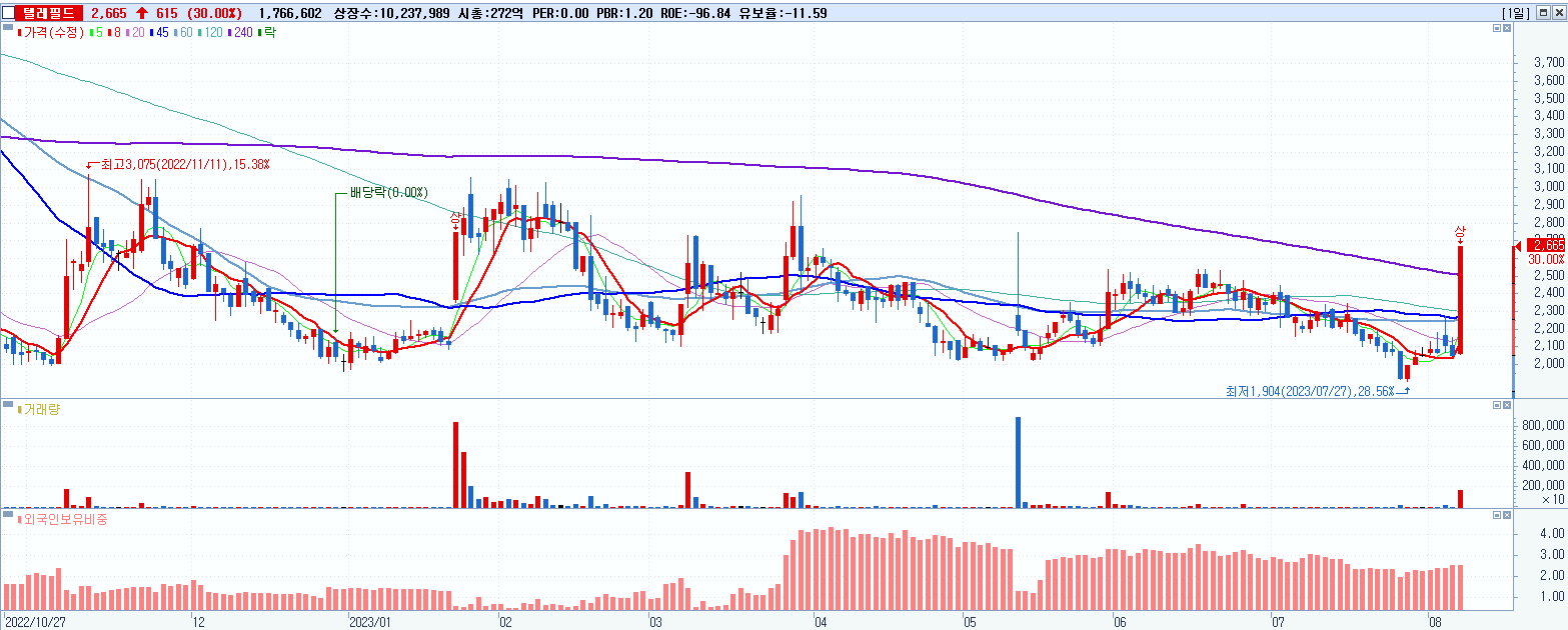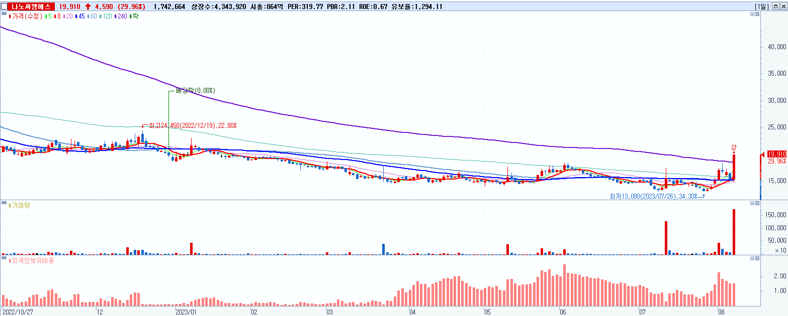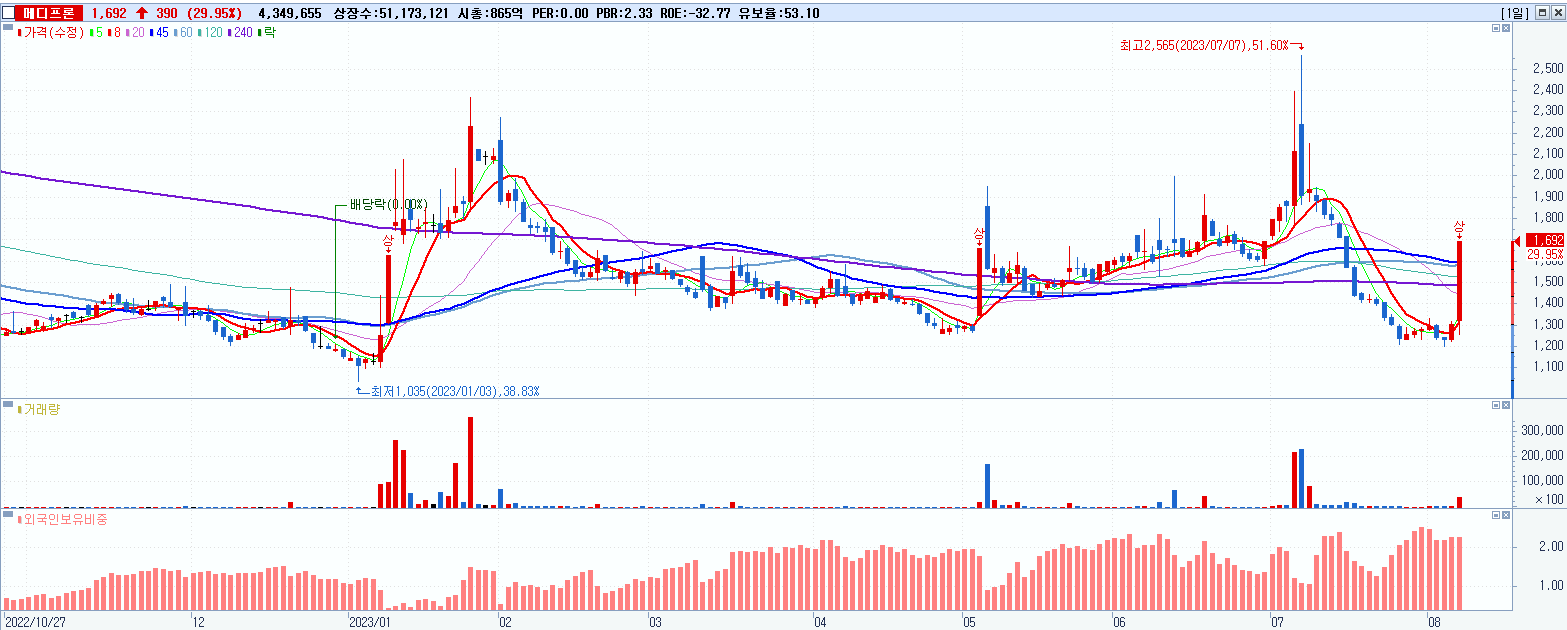 시총: 865억 거래량: 1,743,774 거래대금:323억