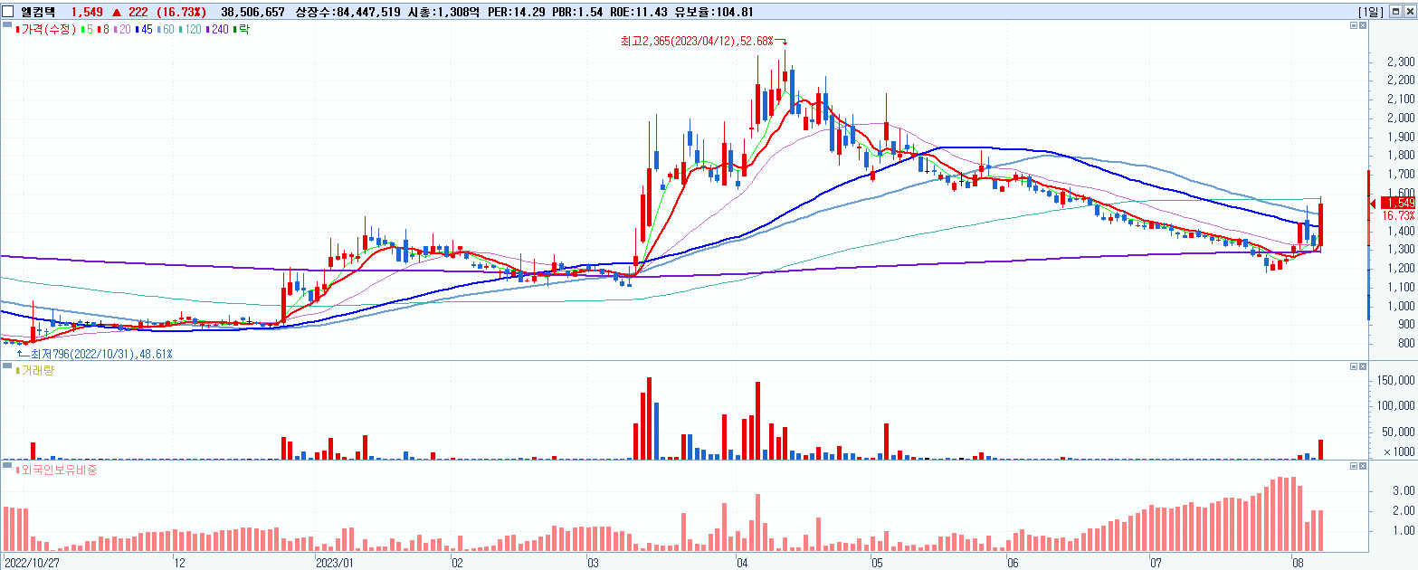 시총: 1,549억 거래량: 3,259,360 거래대금:311억