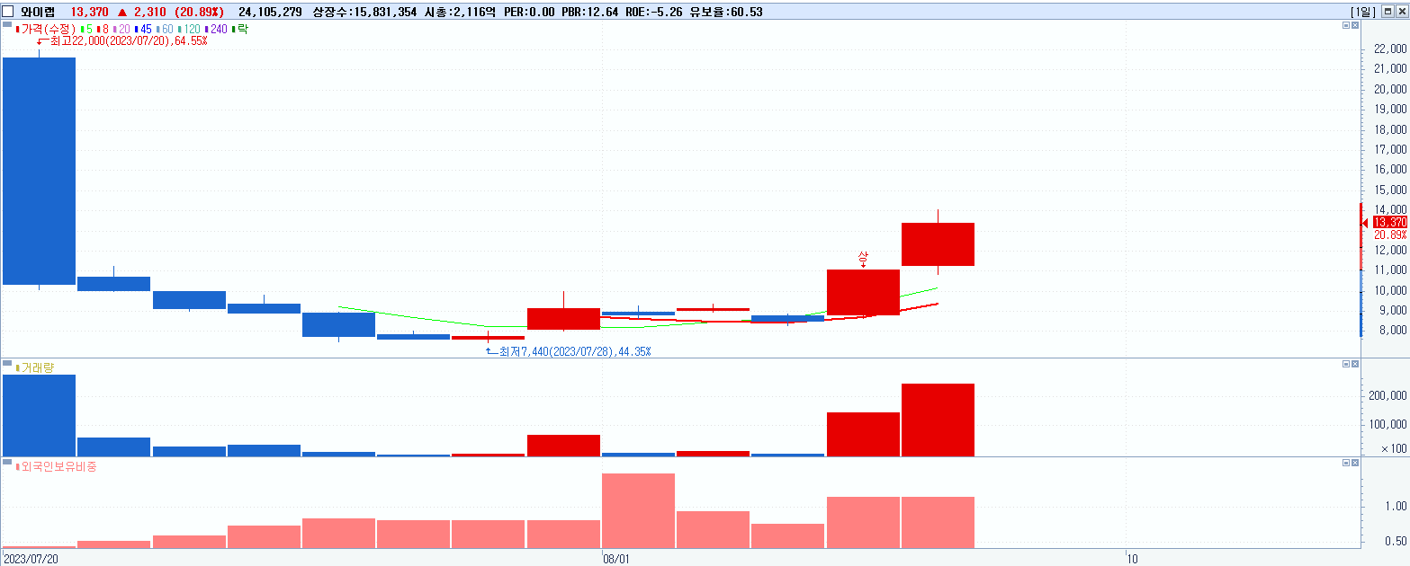 시총: 1,810억 거래량: 1,538,144 거래대금:258억