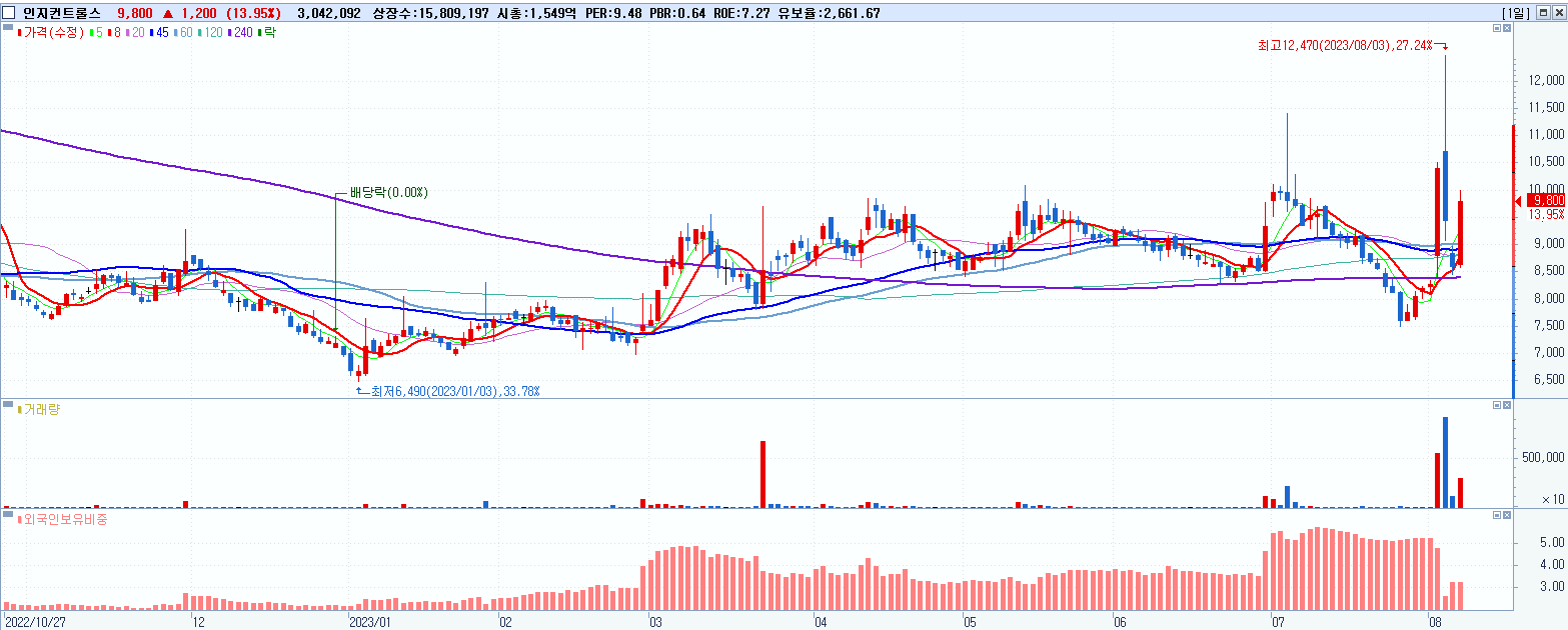 26.인지컨트롤스 (KOSPI, 023800) 등락율 13.95%