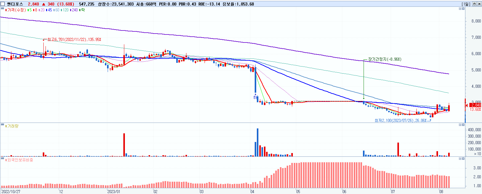 27.앤디포스 (KOSDAQ, 238090) 등락율 13.6%