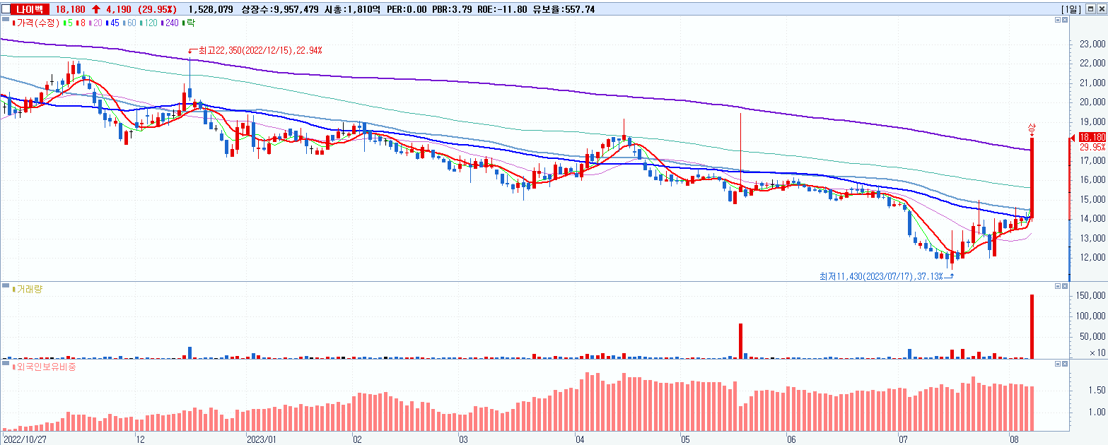 4.나이벡 (KOSDAQ, 138610) 등락율 29.95%