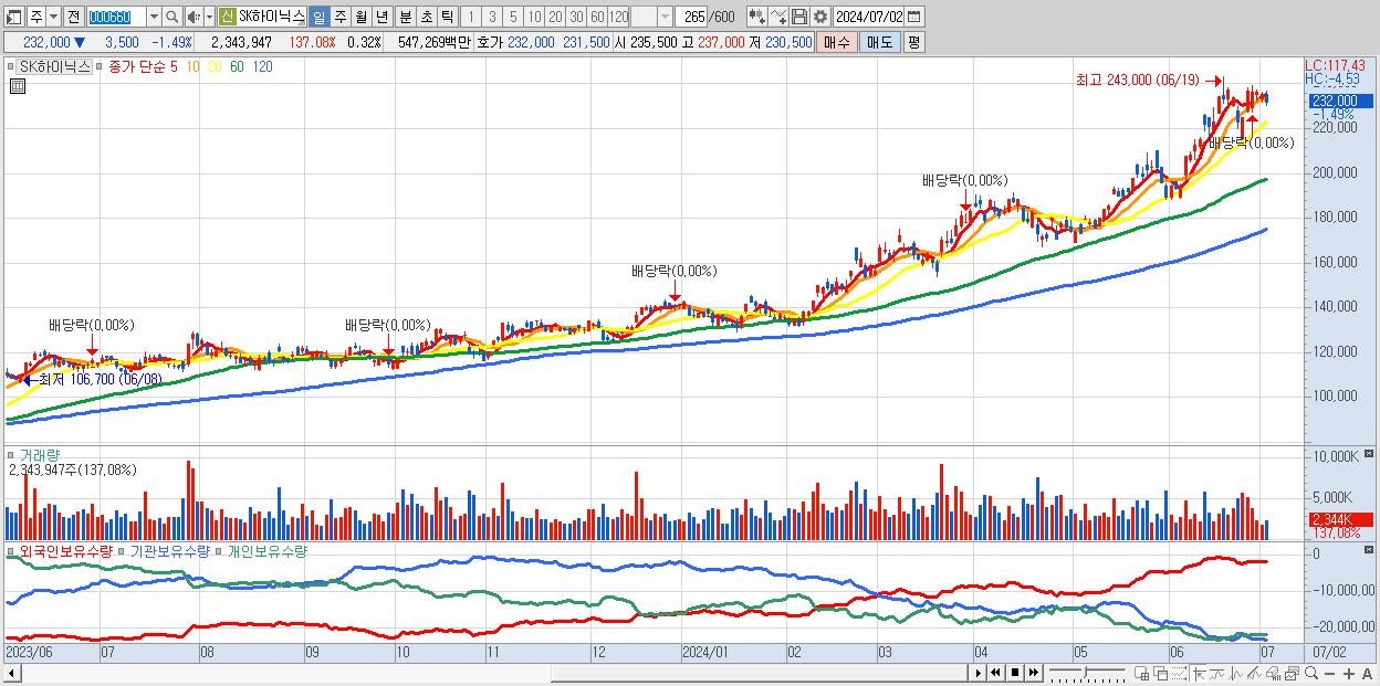 2.SK하이닉스 232,000원 ▼ -1.49% (KOSPI, 000660)
