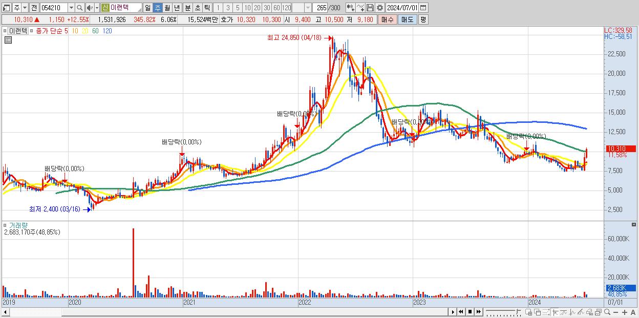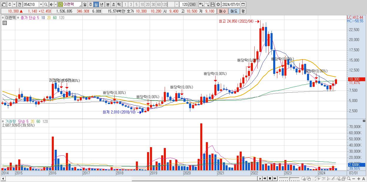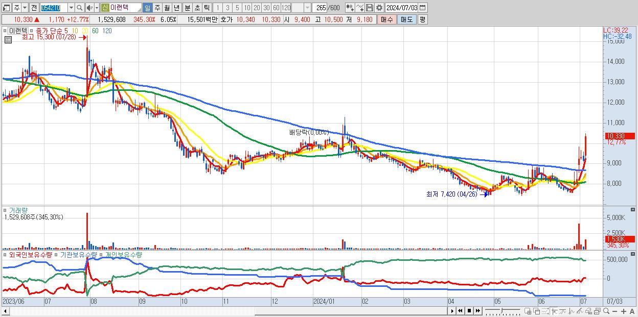 - 이랜텍 (9,160원 , 시총: 2,317억)