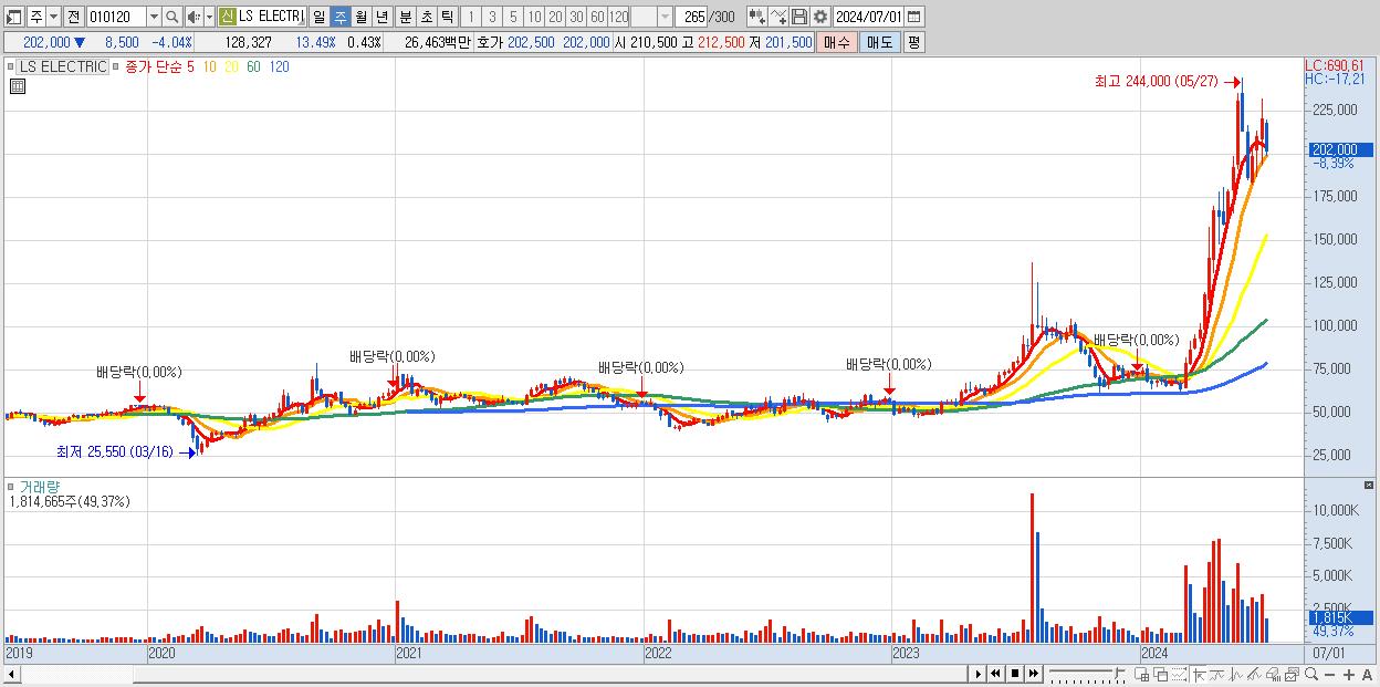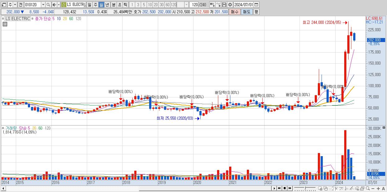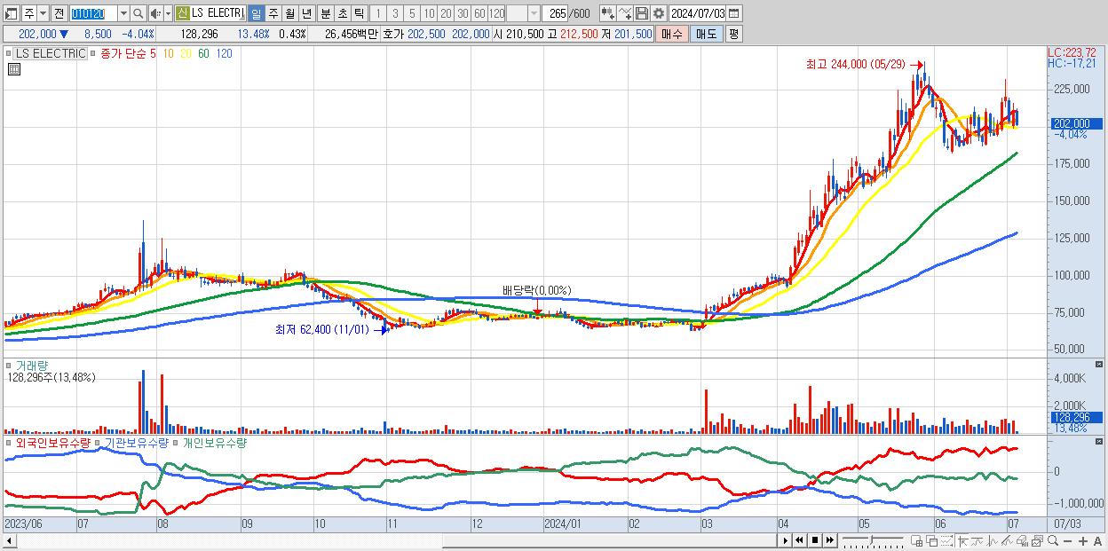 - LS ELECTRIC (210,500원 , 시총: 63,150억)