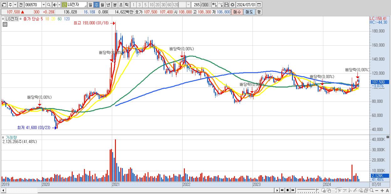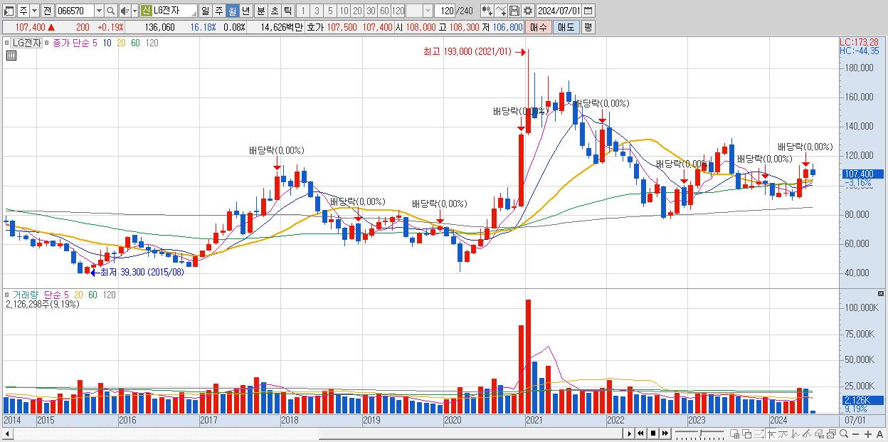 - LG전자 (107,200원 , 시총: 175,430억)