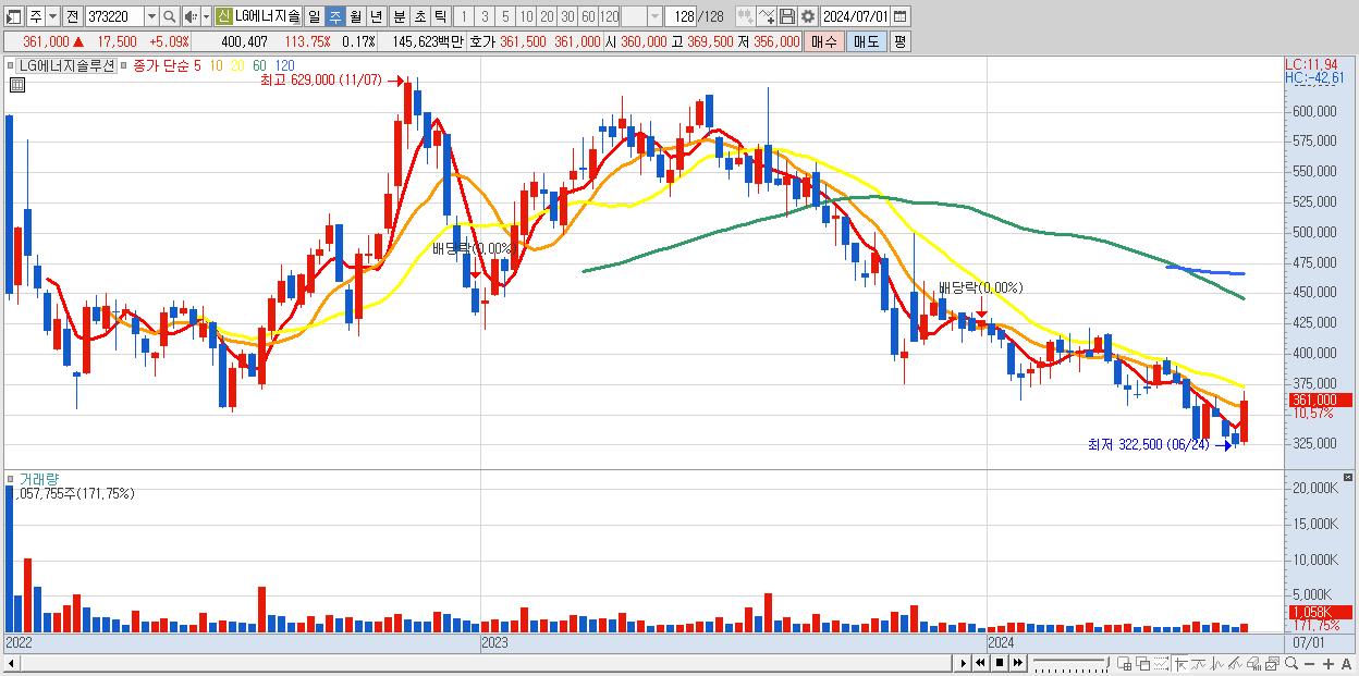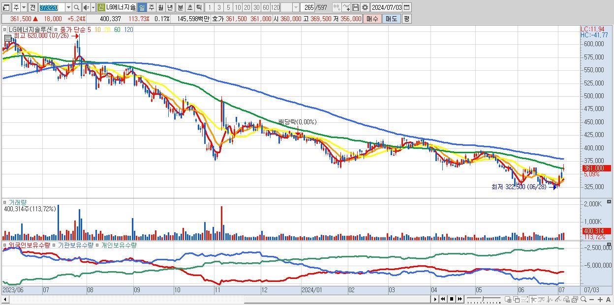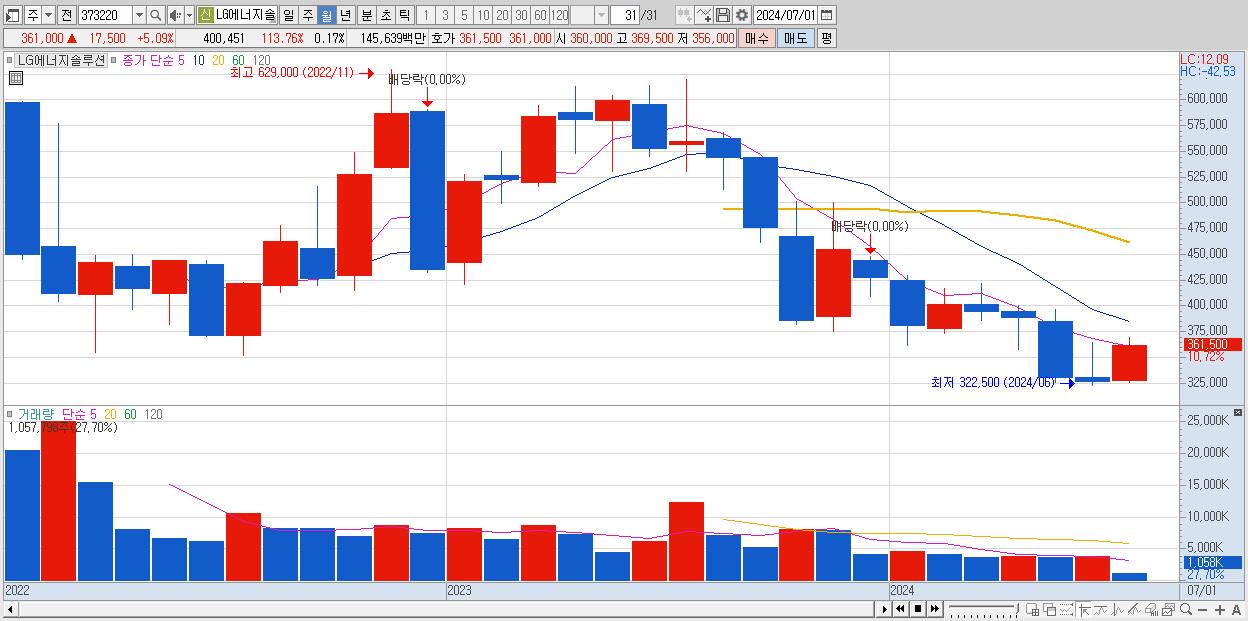 - LG에너지솔루션 (343,500원 , 시총: 803,790억)