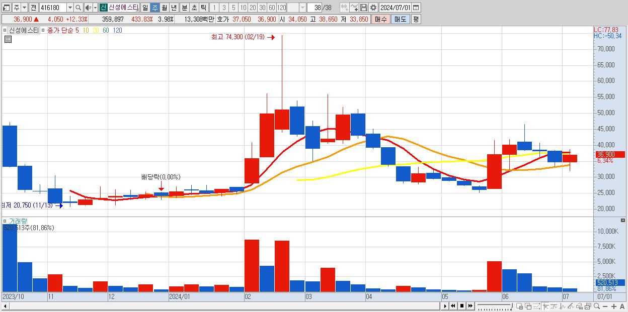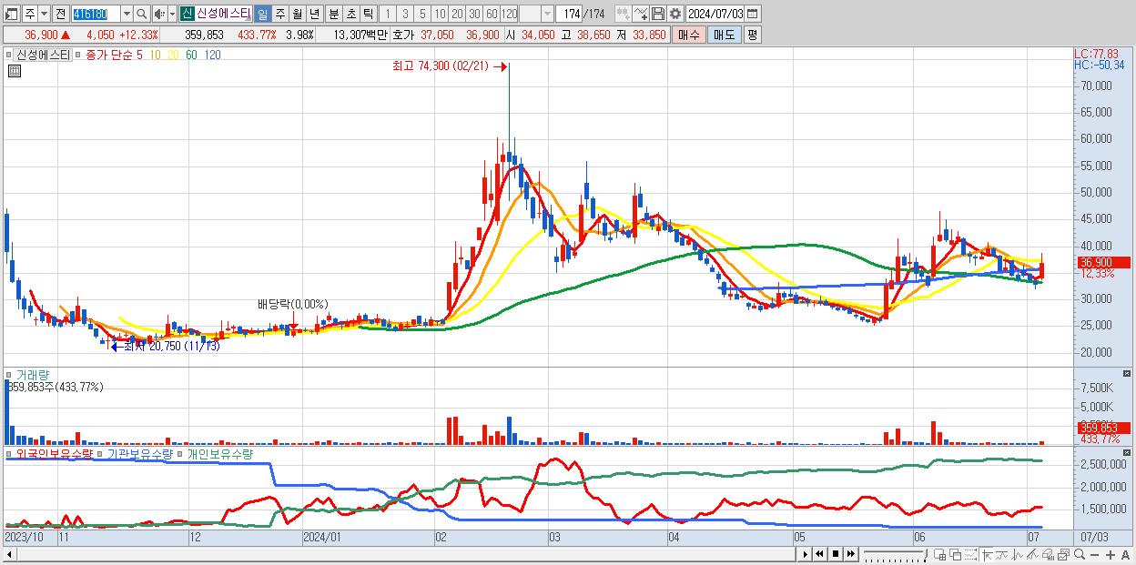 - 신성에스티 (32,850원 , 시총: 2,970억)