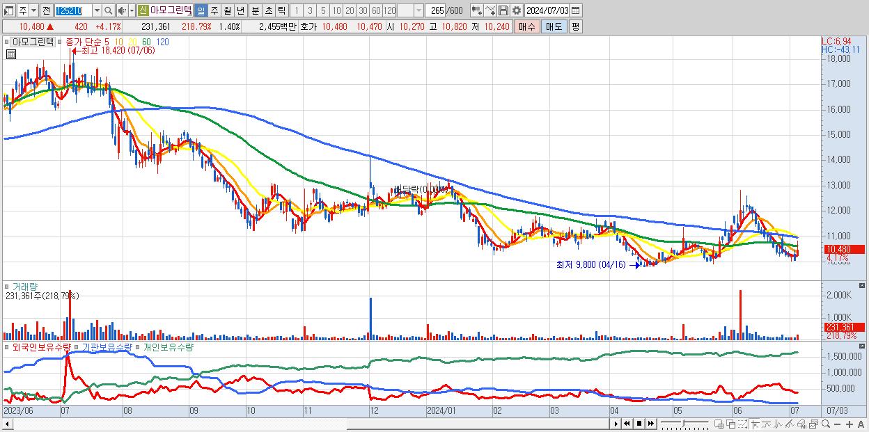 - 아모그린텍 (10,060원 , 시총: 1,660억)