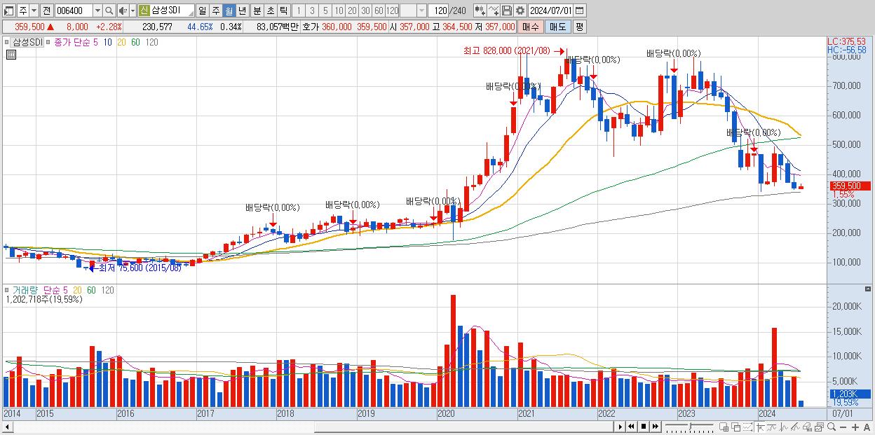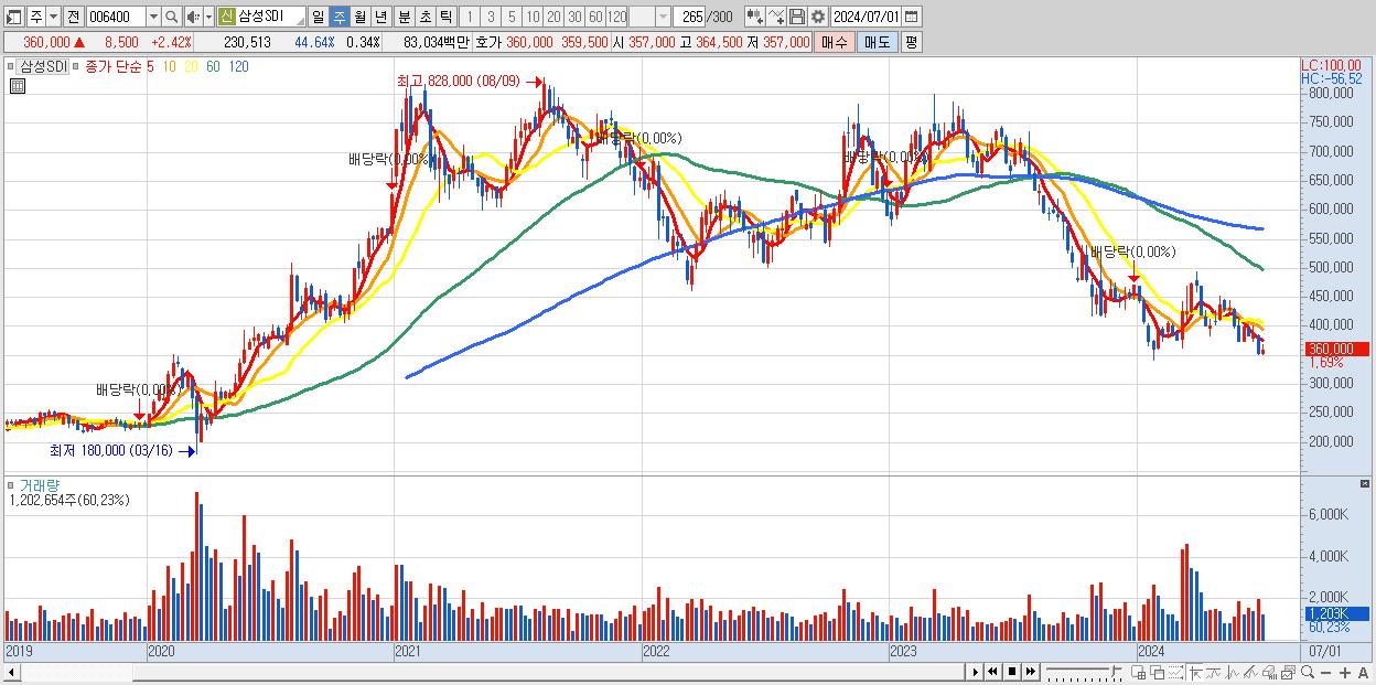 - 삼성SDI (351,500원 , 시총: 241,707억)