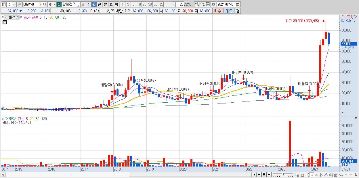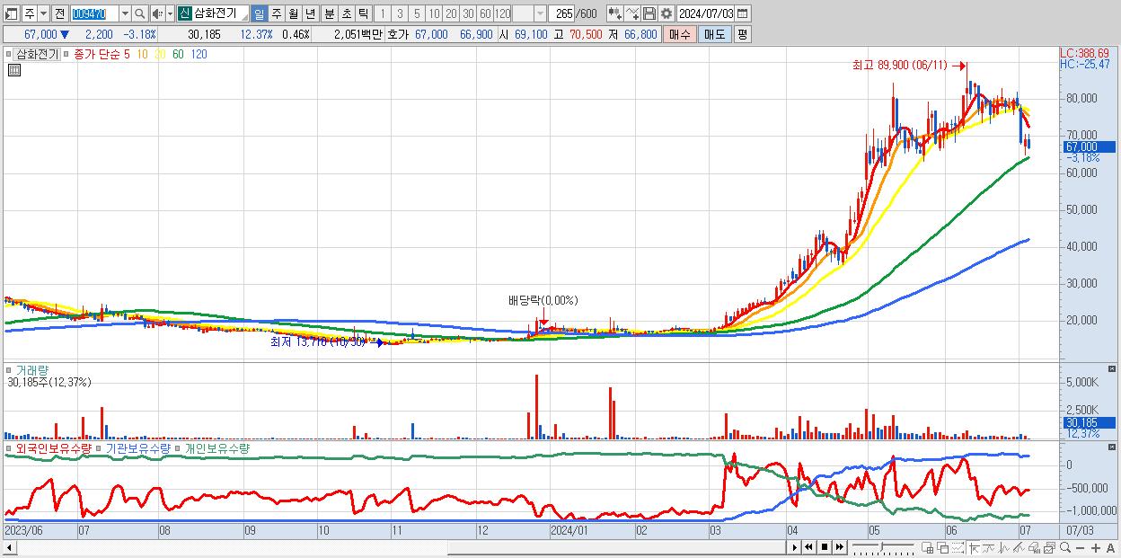 - 삼화전기 (69,200원 , 시총: 4,577억)