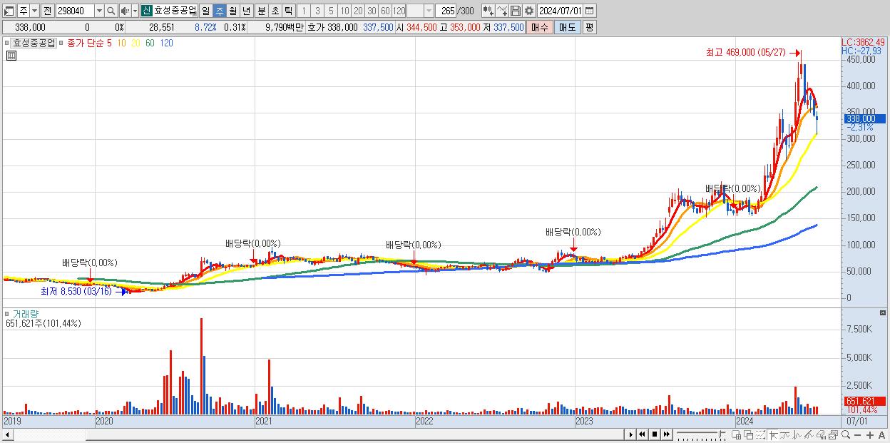 - 효성중공업 (338,000원 , 시총: 31,517억)