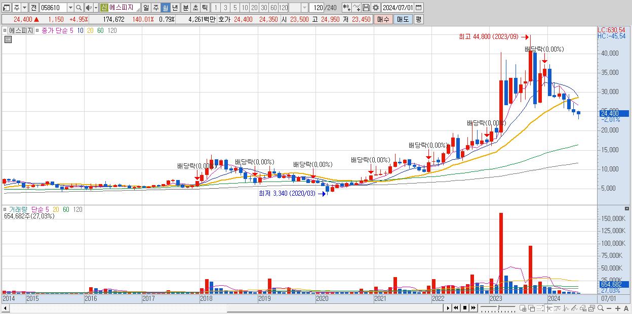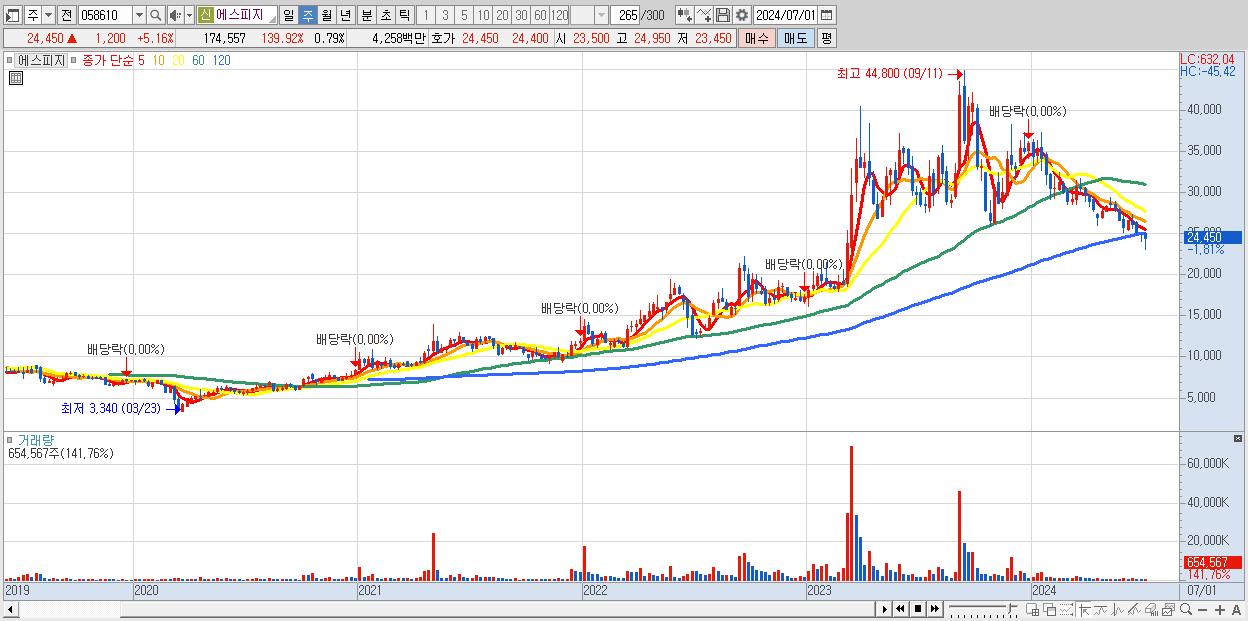 - 에스피지 (24,500원 , 시총: 5,433억)