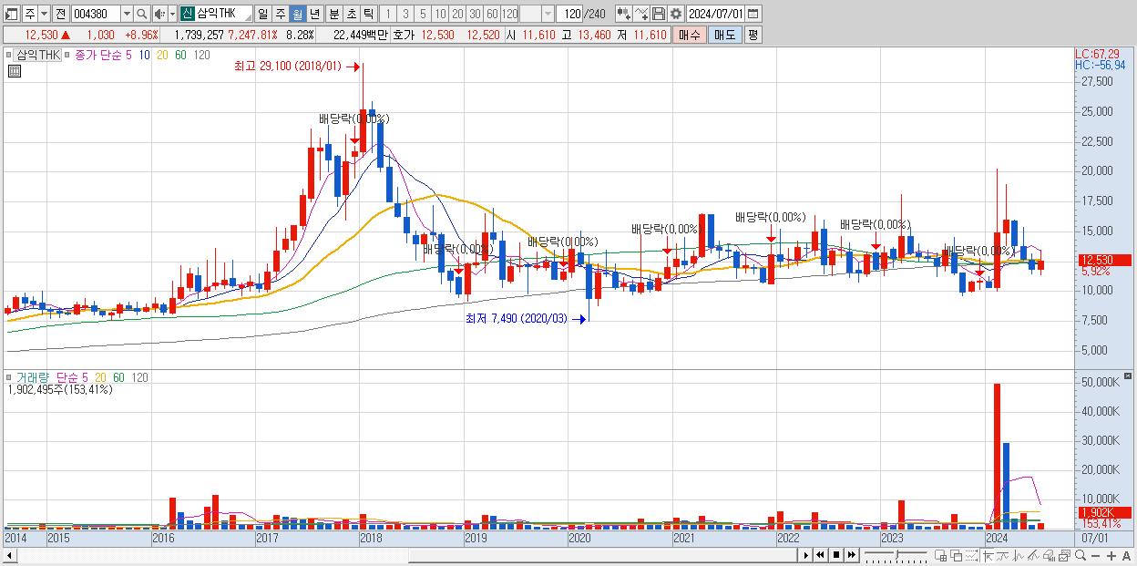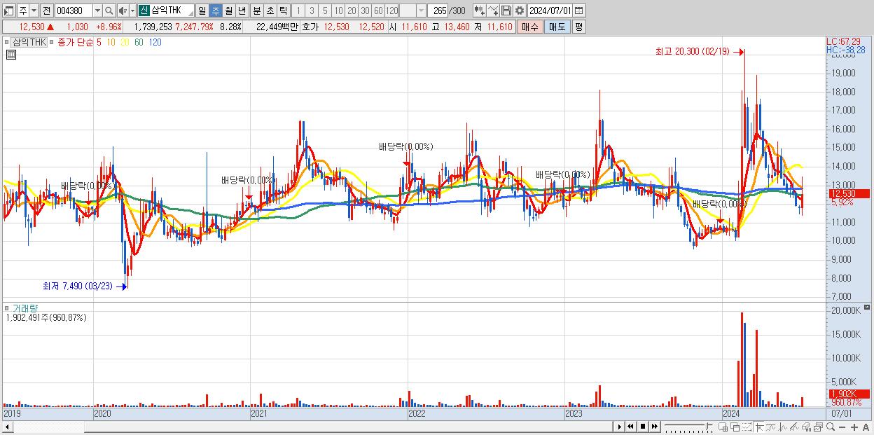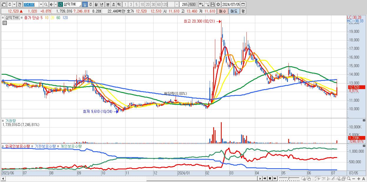 - 삼익THK (13,030원 , 시총: 2,736억)