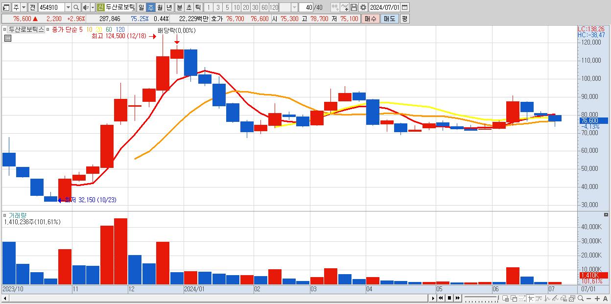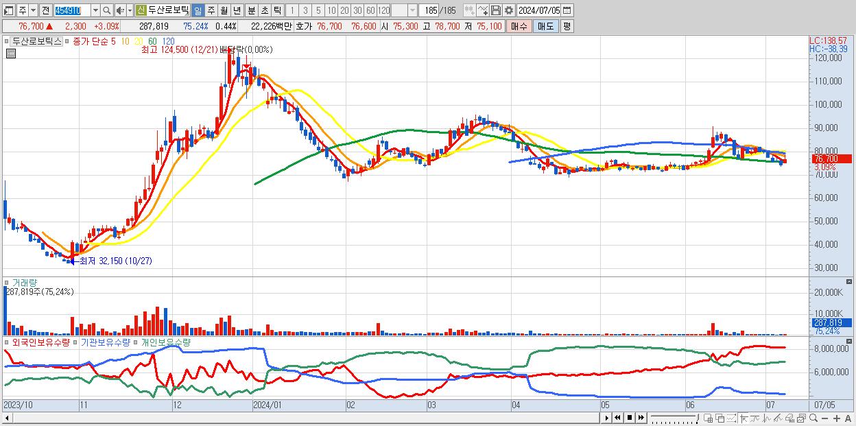- 두산로보틱스 (77,700원 , 시총: 50,365억)