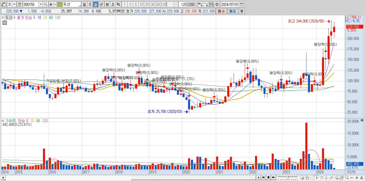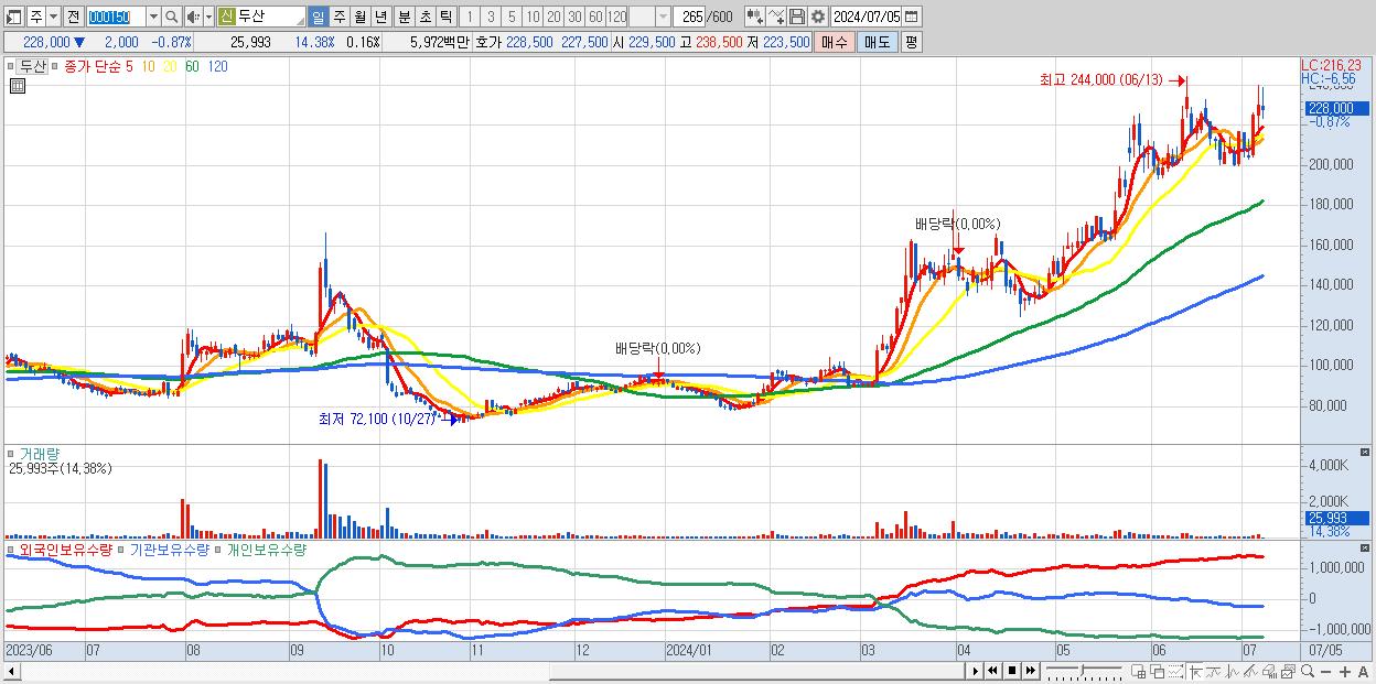 - 두산 (228,500원 , 시총: 37,757억)
