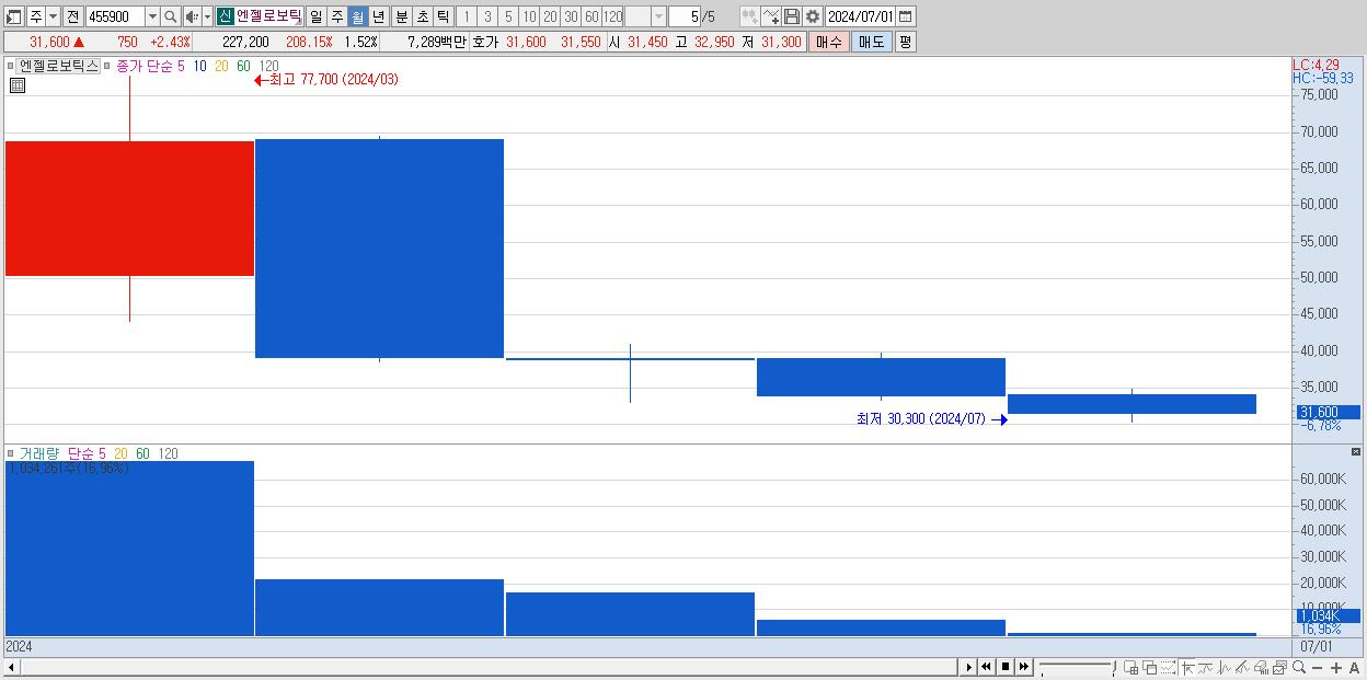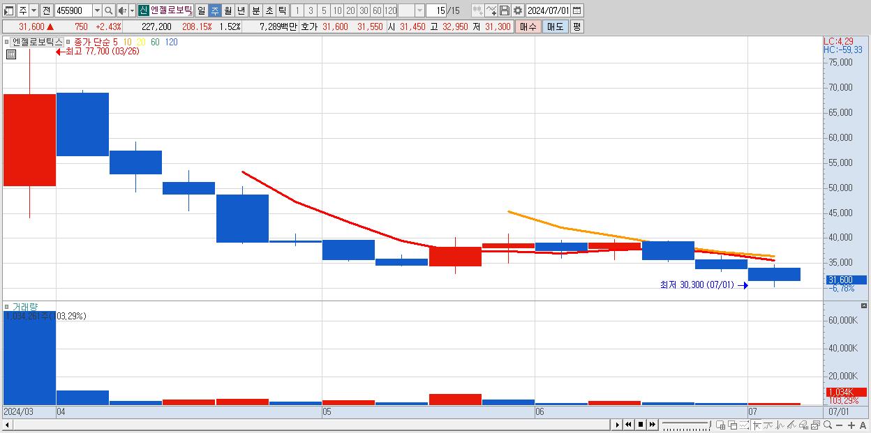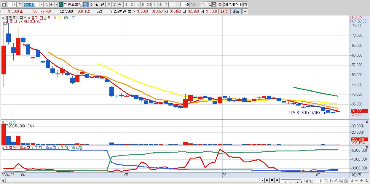 - 엔젤로보틱스 (32,050원 , 시총: 4,790억)