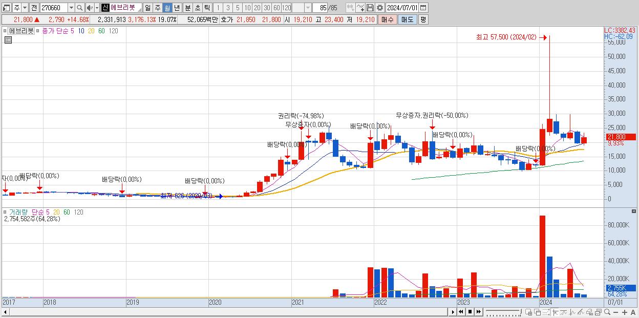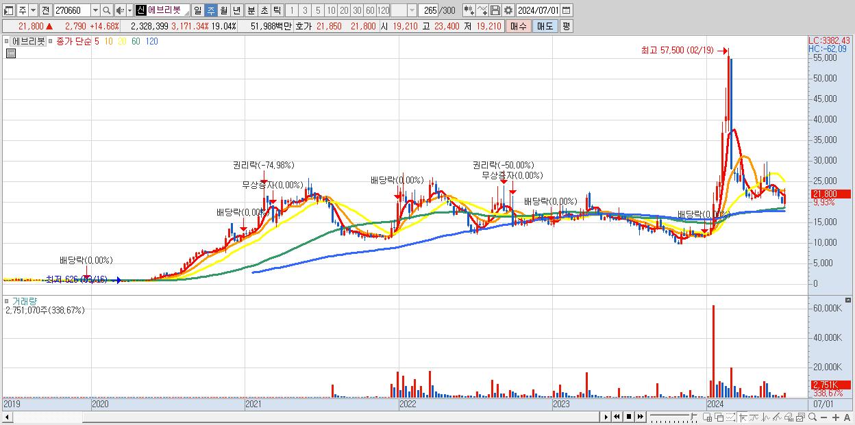 1.에브리봇 22,550원 (KOSDAQ, 270660)시총: 2,758억