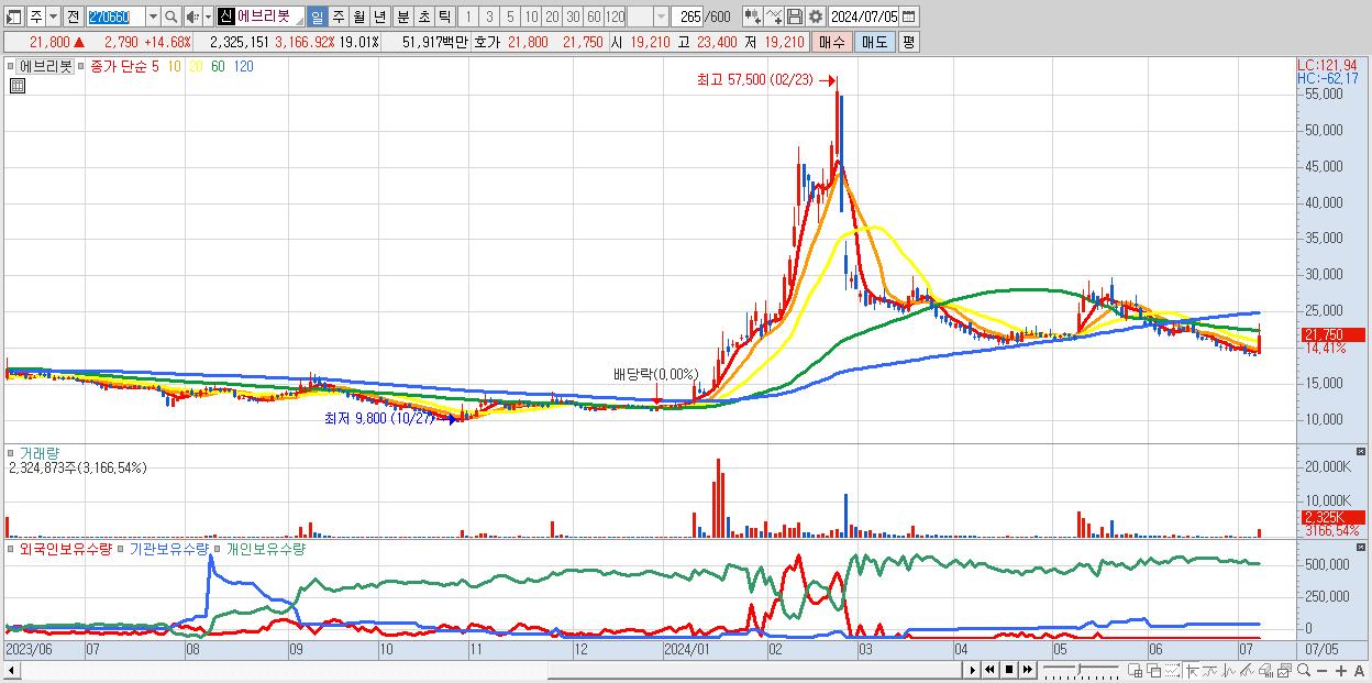 - 에브리봇 (22,550원 , 시총: 2,758억)
