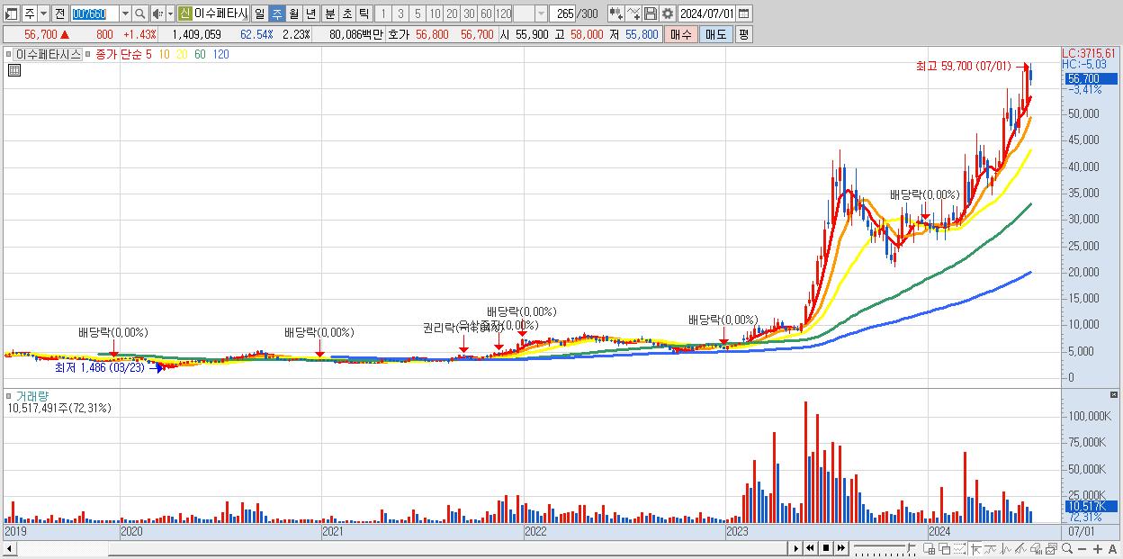 - 이수페타시스 (56,700원 ▼ -3.41% , 시총: 35,861억, 거래량: 10,517,491, 거래대금:6,031억)