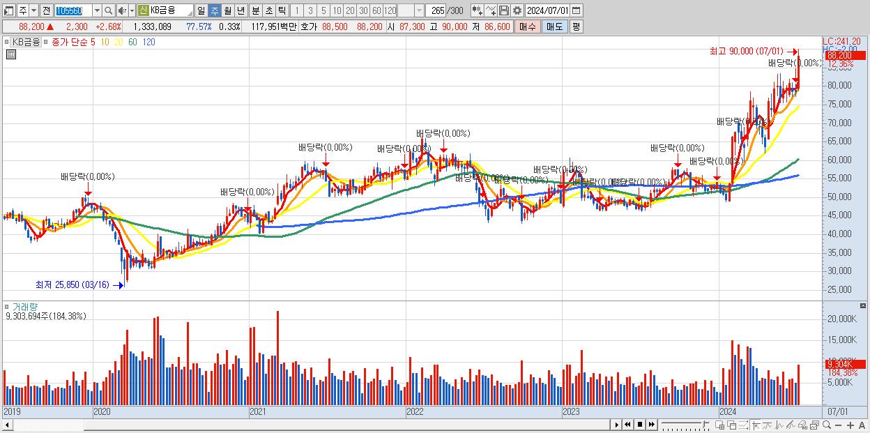 - KB금융 (88,200원 ▲ 12.36% , 시총: 355,897억, 거래량: 9,303,694, 거래대금:7,890억)