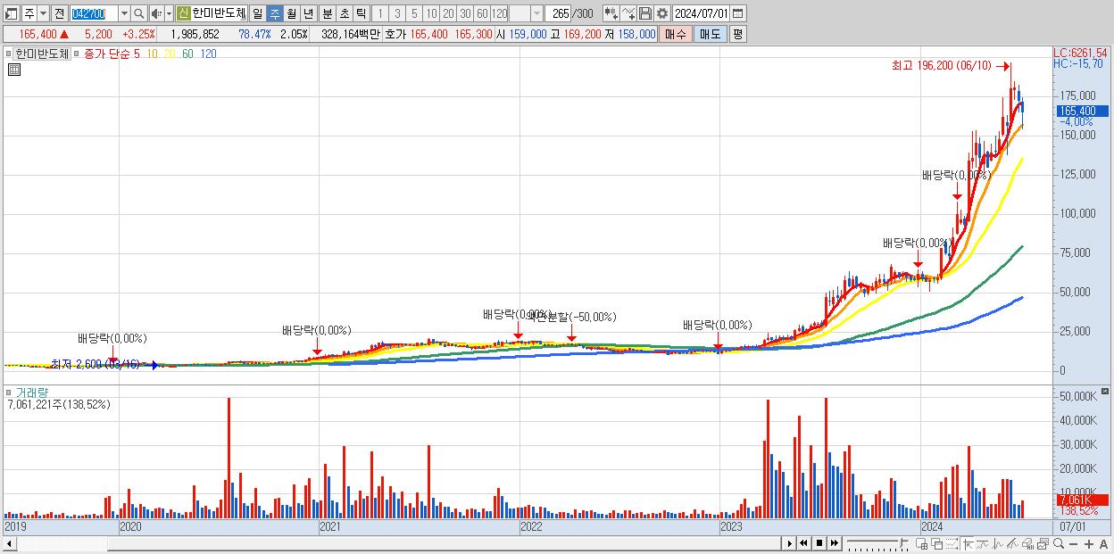 - 한미반도체 (165,400원 ▼ -4% , 시총: 160,427억, 거래량: 7,061,221, 거래대금:11,644억)