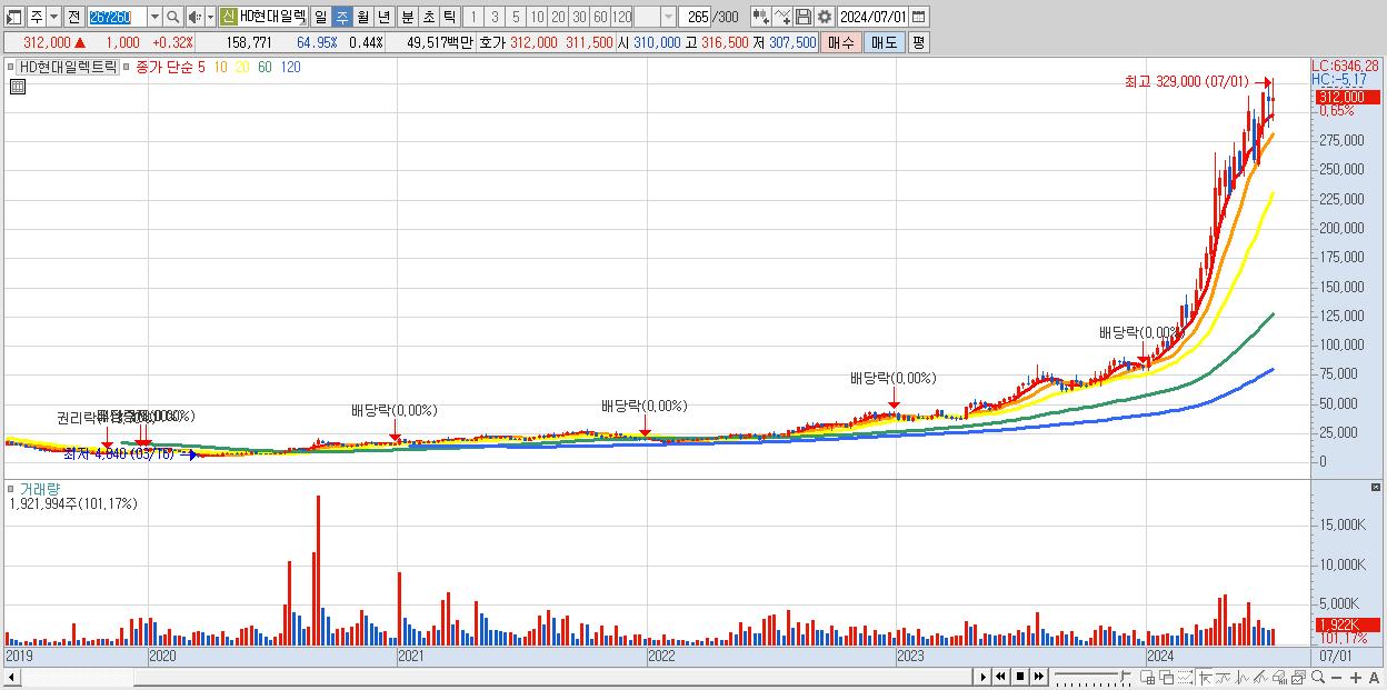 - HD현대일렉트릭 (312,000원 ▲ 0.65% , 시총: 112,467억, 거래량: 1,921,994, 거래대금:5,994억)
