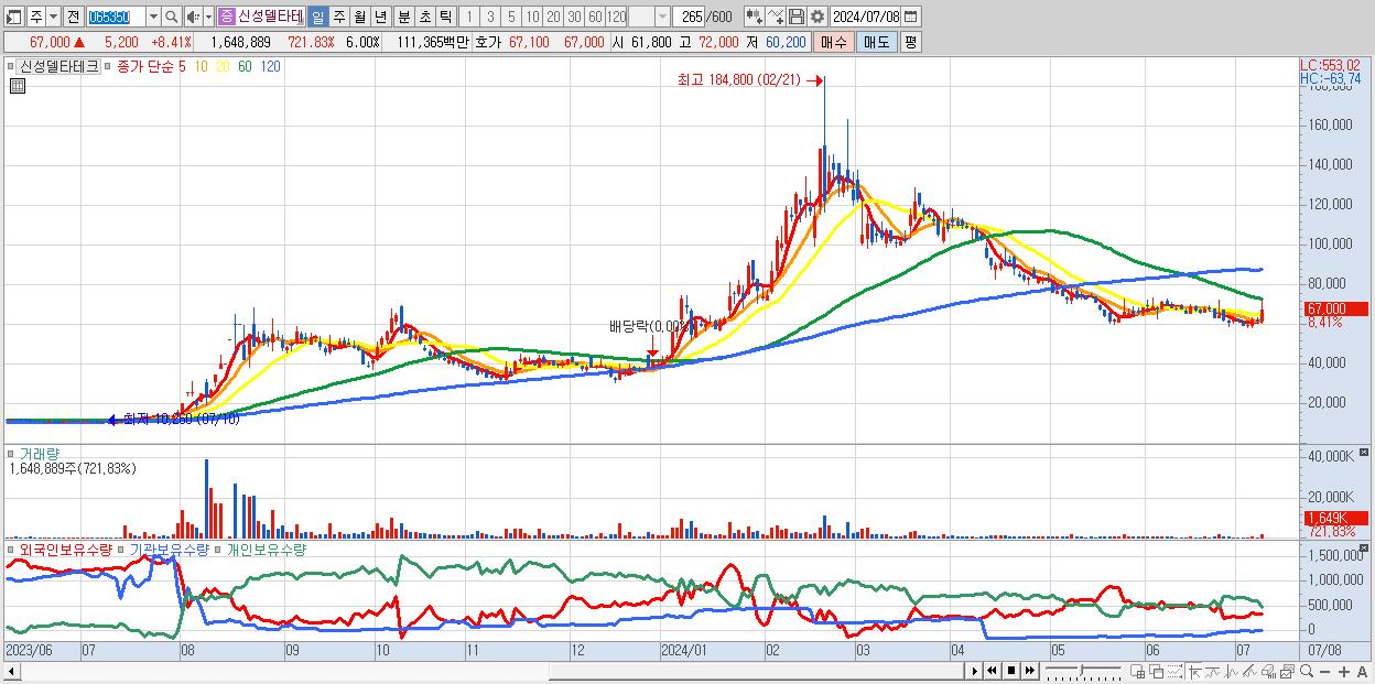 - 신성델타테크 (67,000원 ▲ 8.41% , 시총: 18,414억, 외국인 순매수 거래금:94억)