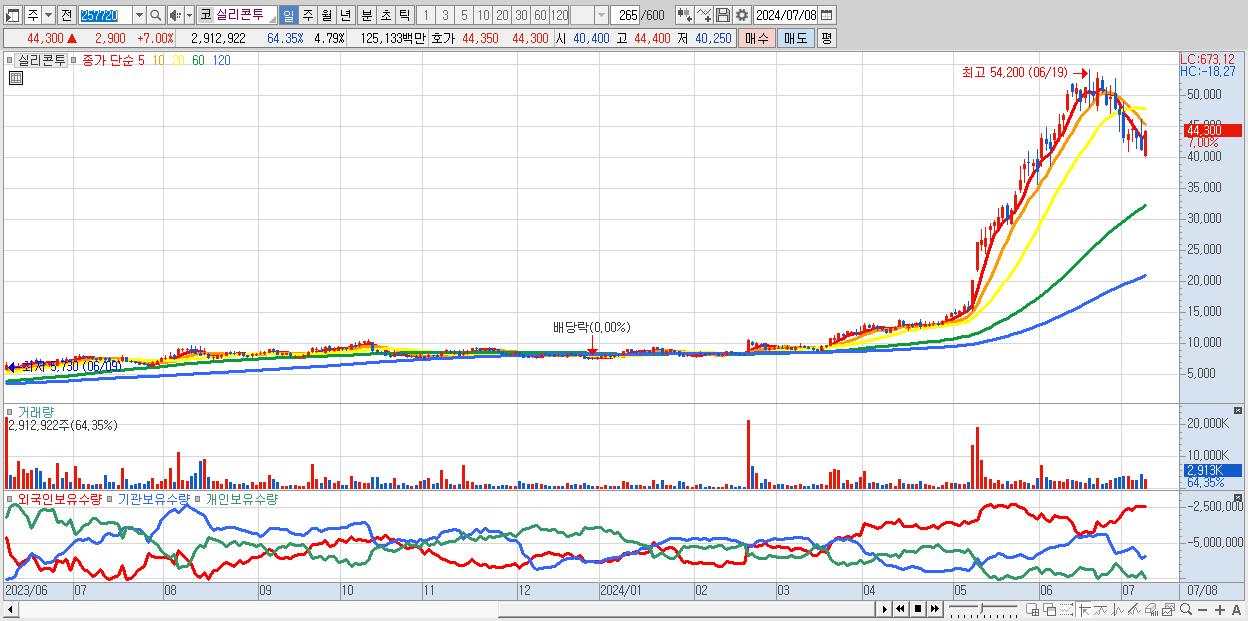 - 실리콘투 (44,300원 ▲ 7% , 시총: 26,967억, 외국인 순매수 거래금:151억)