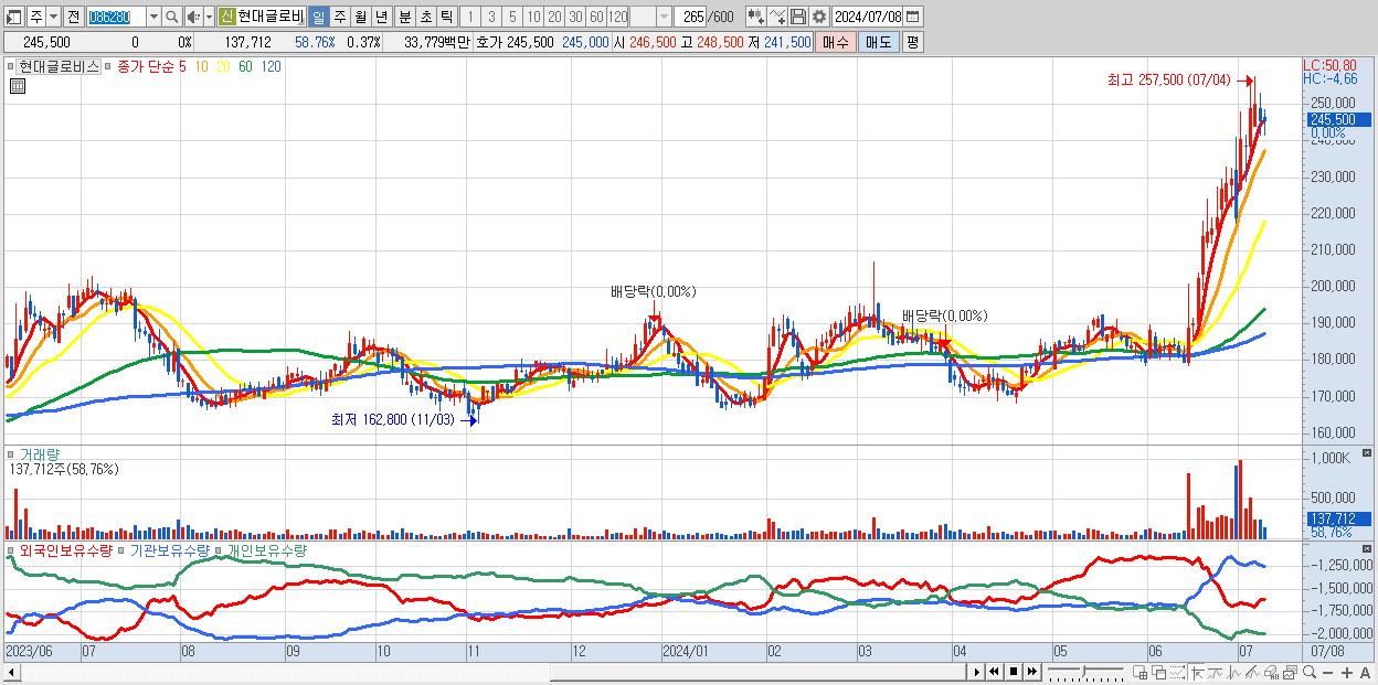 - 현대글로비스 (245,500원 0% , 시총: 92,063억, 외국인 순매수 거래금:57억)