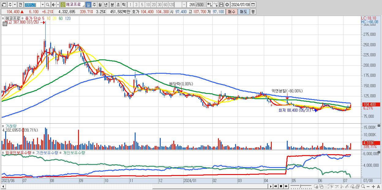 - 에코프로 (104,400원 ▲ 6.21% , 시총: 138,996억, 외국인 순매수 거래금:586억)