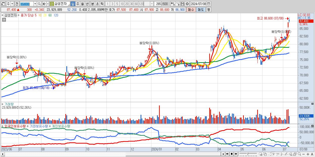 1.삼성전자 87,400원 ▲ 0.34% (KOSPI, 005930)