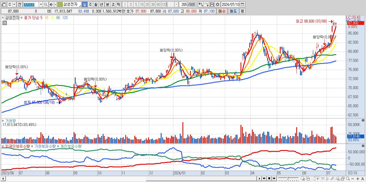 1.삼성전자 87,800원 0% (KOSPI, 005930)