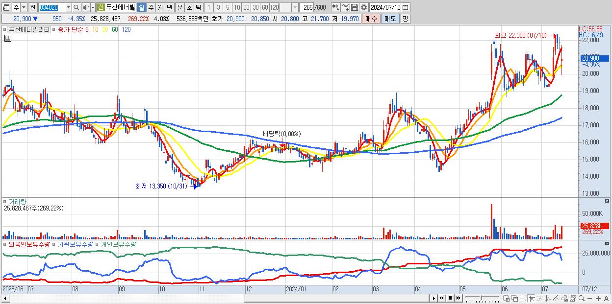 - 두산에너빌리티 (20,900원 ▼ -4.35% , 시총: 133,877억, 거래량: 25,828,467, 거래대금:5,366억)