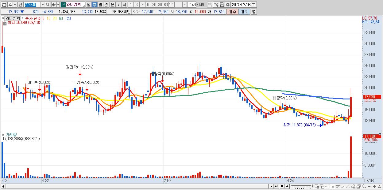 - 와이엠텍 (17,930원 ▲ 33.31% , 시총: 1,966억, 거래량: 17,138,386, 거래대금:3,064억)