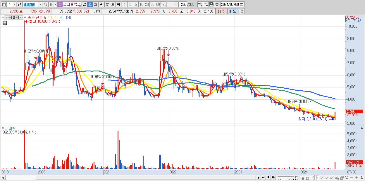 - 스타플렉스 (2,995원 ▲ 27.99% , 시총: 239억, 거래량: 962,889, 거래대금:27억)