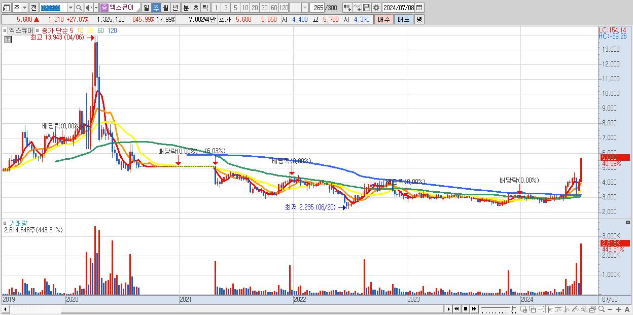 - 엑스큐어 (5,680원 ▲ 40.59% , 시총: 418억, 거래량: 2,614,648, 거래대금:126억)