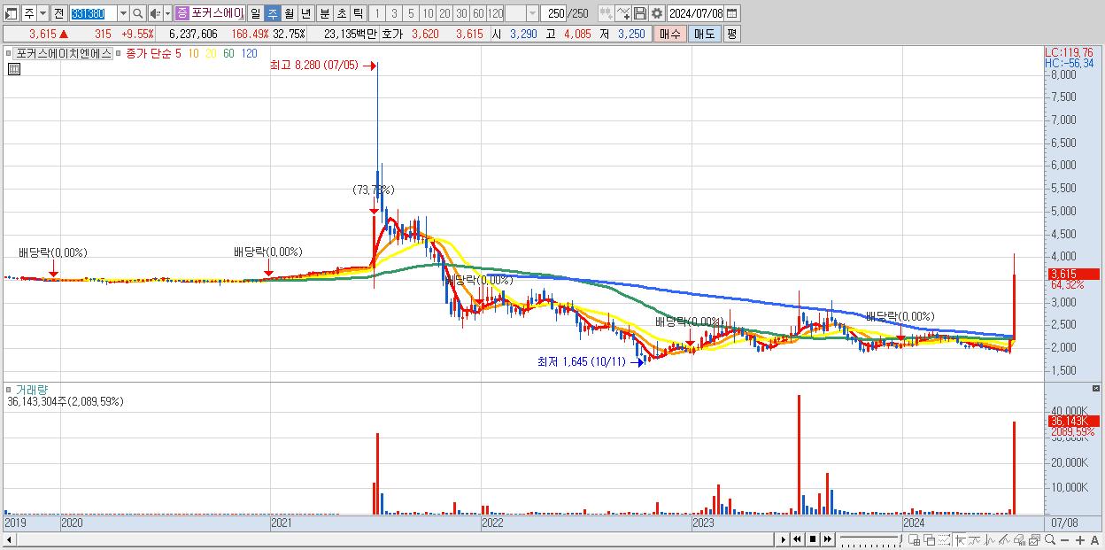 2.포커스에이치엔에스 3,615원 ▲ 64.32% (KOSDAQ, 331380)