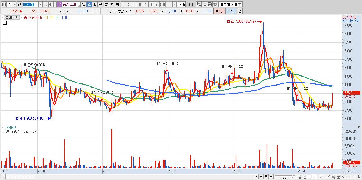 29.홈캐스트 3,520원 ▲ 25.27% (KOSDAQ, 064240)