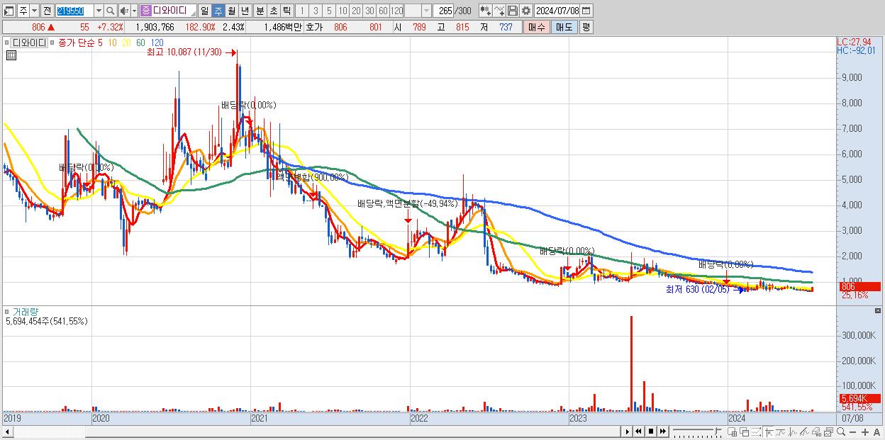 - 디와이디 (806원 ▲ 25.16% , 시총: 632억, 거래량: 5,694,454, 거래대금:43억)