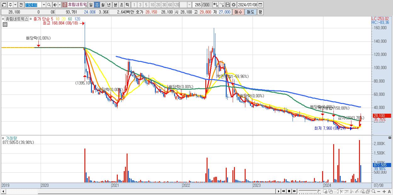 - 휴림네트웍스 (28,100원 ▲ 35.75% , 시총: 784억, 거래량: 877,585, 거래대금:226억)