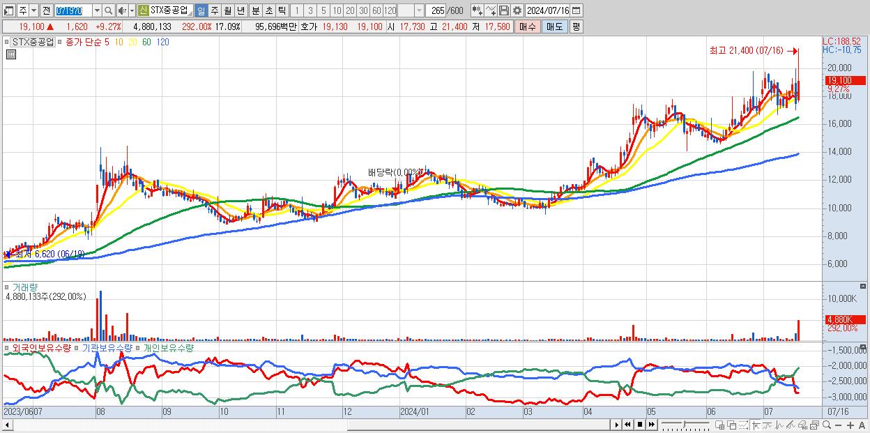- STX중공업 (19,100원 ▲ 9.27% , 시총: 5,454억, 거래량: 4,880,133, 거래대금:957억)