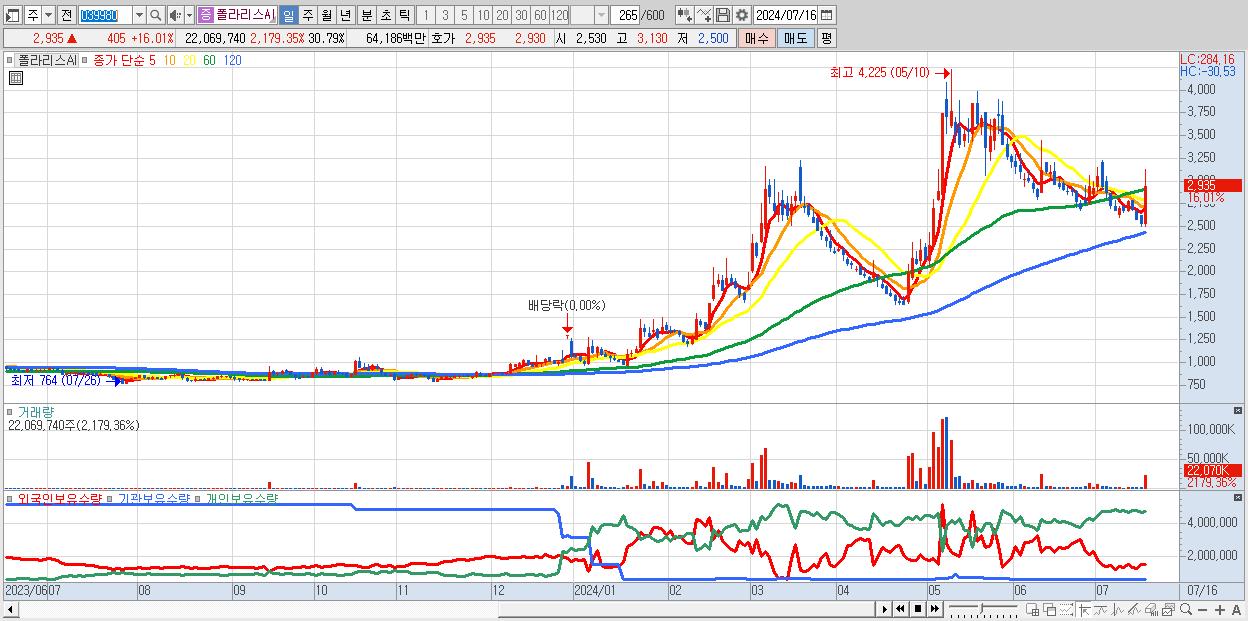 - 폴라리스AI (2,935원 ▲ 16.01% , 시총: 2,104억, 거래량: 22,069,740, 거래대금:642억)