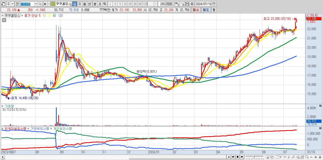 쿠쿠홀딩스 23,100원 ▲ 1.54% (KOSPI, 192400)